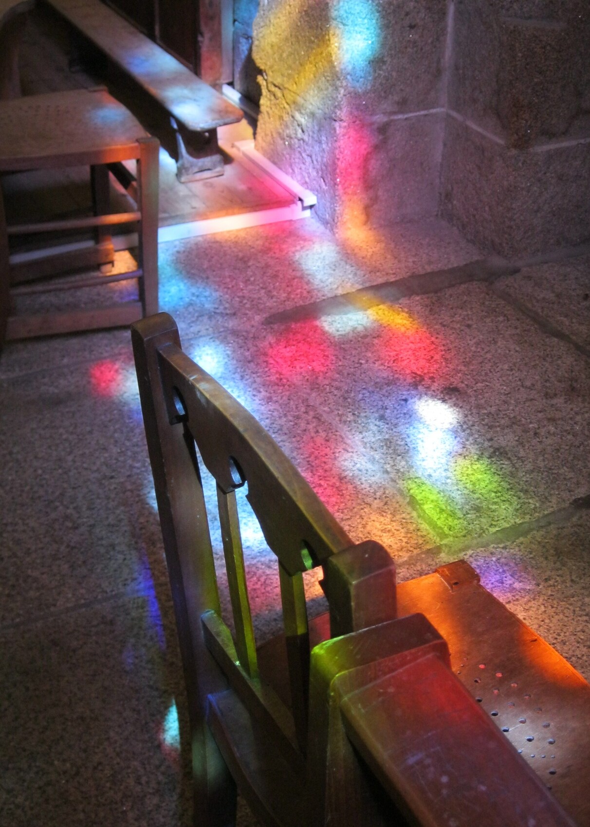 Photo 17 août 2015 Quand les vitraux d'une église se répandent sur le sol en structures colorées