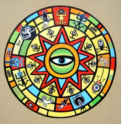 Talisman solaire Acrylique sur bois 90cmx90cm