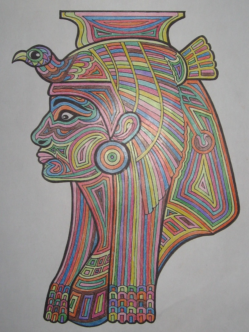 Dessin au crayon de feutre noir et crayons de couleurs.