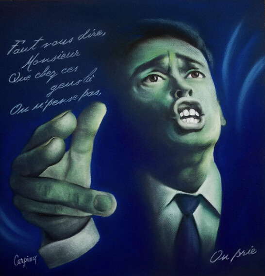 Il y a 45 ans, il nous quittait (09/10/1978). Une voix puissante et nuancée, des phrases finement ciselées formant des textes bien charpentés, et par dessus tout, une présence scénique incomparable donnant à ses chansons un relief saisissant.… Pastel sec sur papier de couleur - 47 x 40 cm.