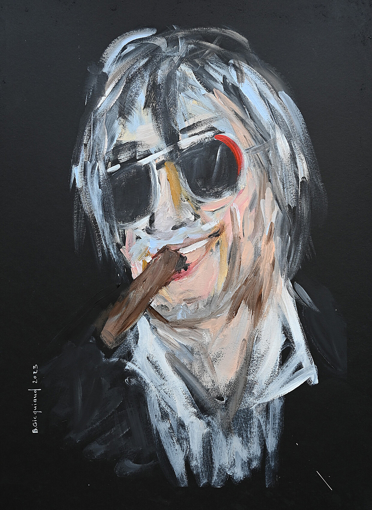 C'est un écoutant le disque DUTRONC que je me suis mise à faire instinctivement Jacques le temps d'une 7 OU 8 chansons sur une feuille de papier noir à l'acrylique. J' ai essayé de faire du speed painting mais ces peintres sont plus rapides que moi.