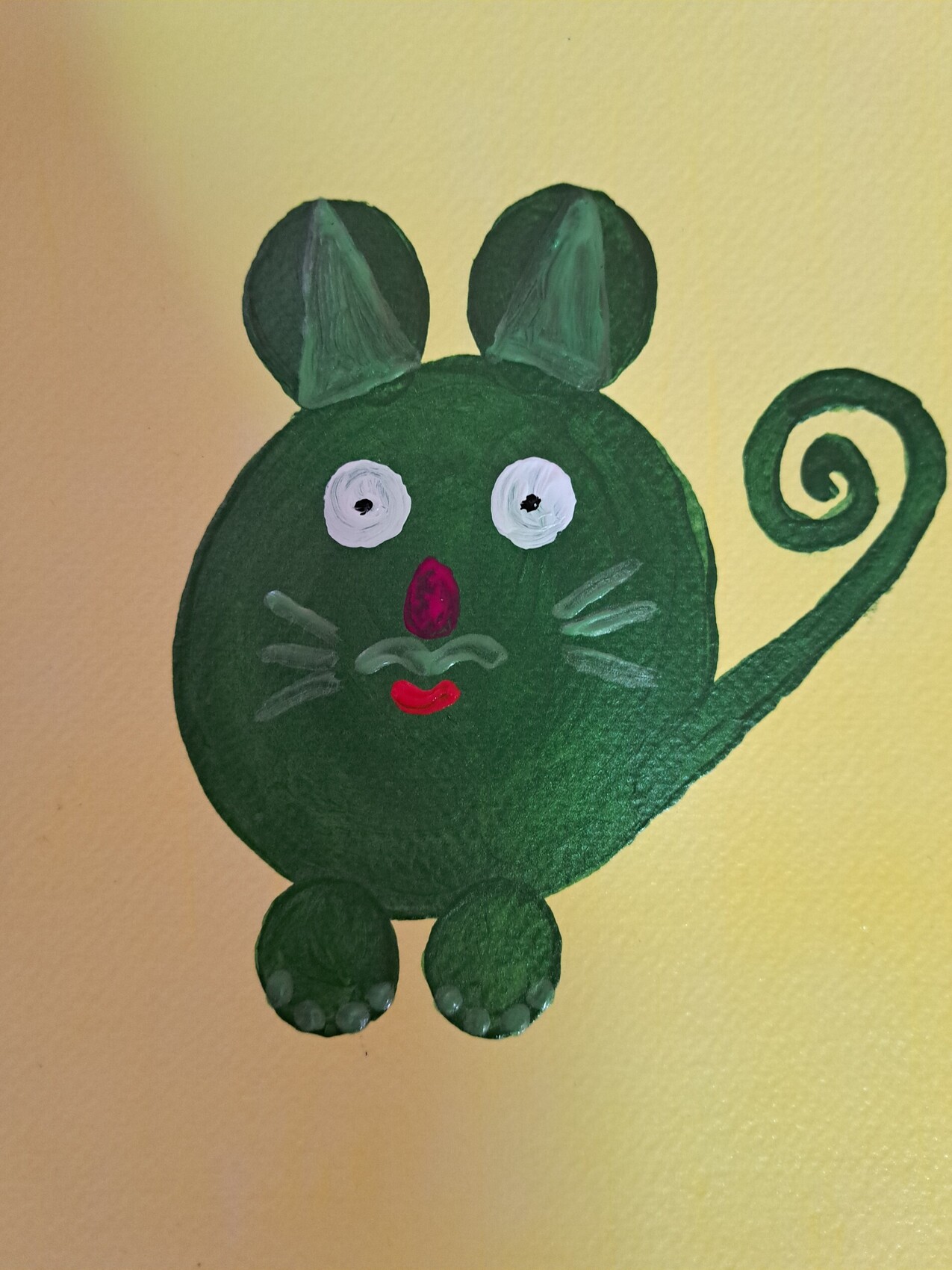 Je suis Ron Ron le Chat Rond ou la Souris...Couleur Amazonie...une peinture acrylique 20 cm × 20 cm...Mai 2023.