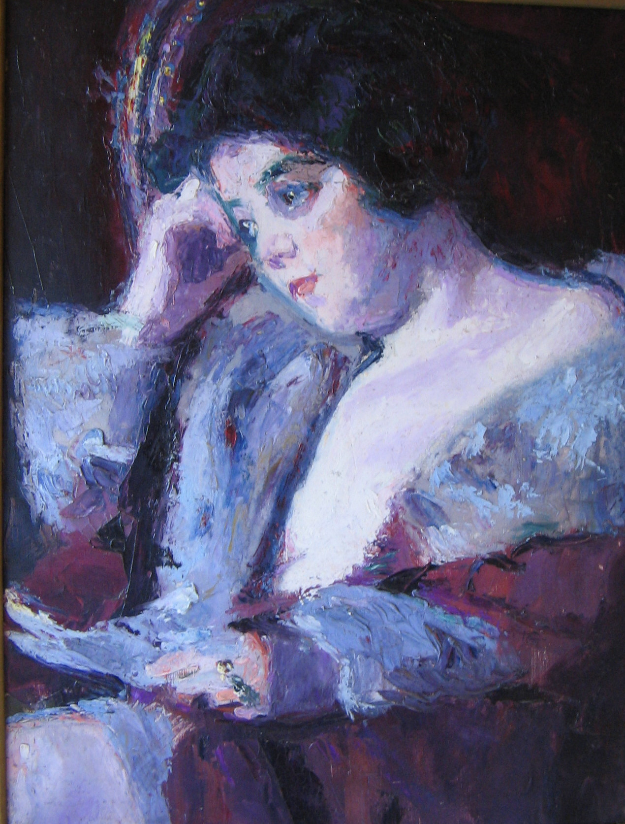J'adore cette toile jouant entre clair et obscur, et cette clarté mauve pâle, et ce regard qui part rêvant déjà .....quel est le contenu de cette lettre qui la plonge dans autant de rêveries...sublime, ce peintre est vraiment à découvrir , jen e le connaissais pas...merci et un grand bravo!