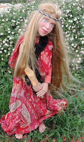 Jeune fille marionnette à fils d'esxposition ou spectacle JfG Jean-François Gantner racontart.fr composition papier maché, bois, ajout de matériaux