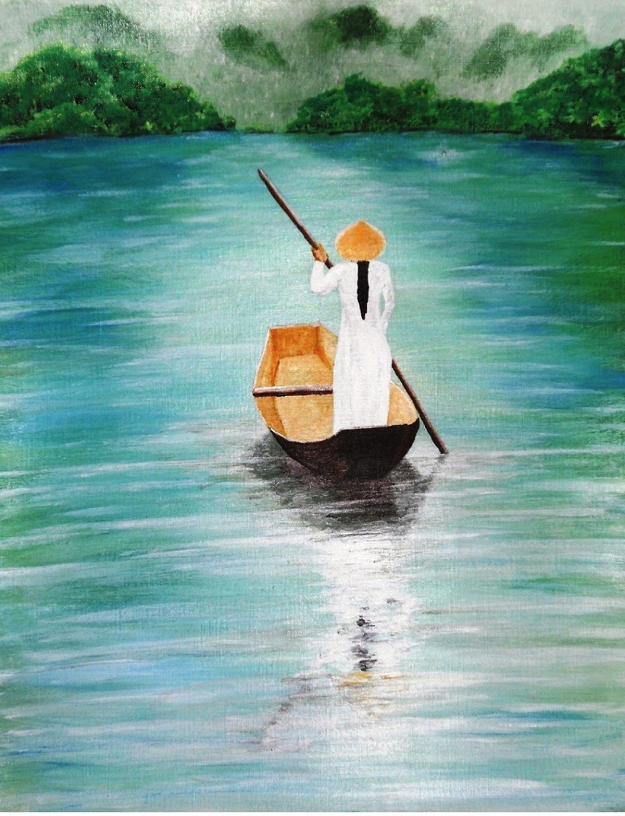 Bonjour Lolo sérénité asiatique la barque glisse sur l'eau reflets magiques superbe