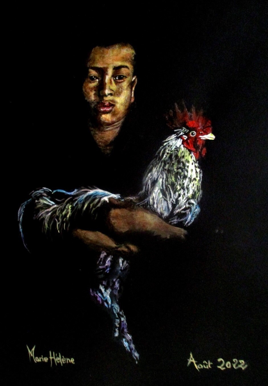 Très belle expression de l'enfant et le coq est magnifique, bravo Bilitis, encore une merveille !