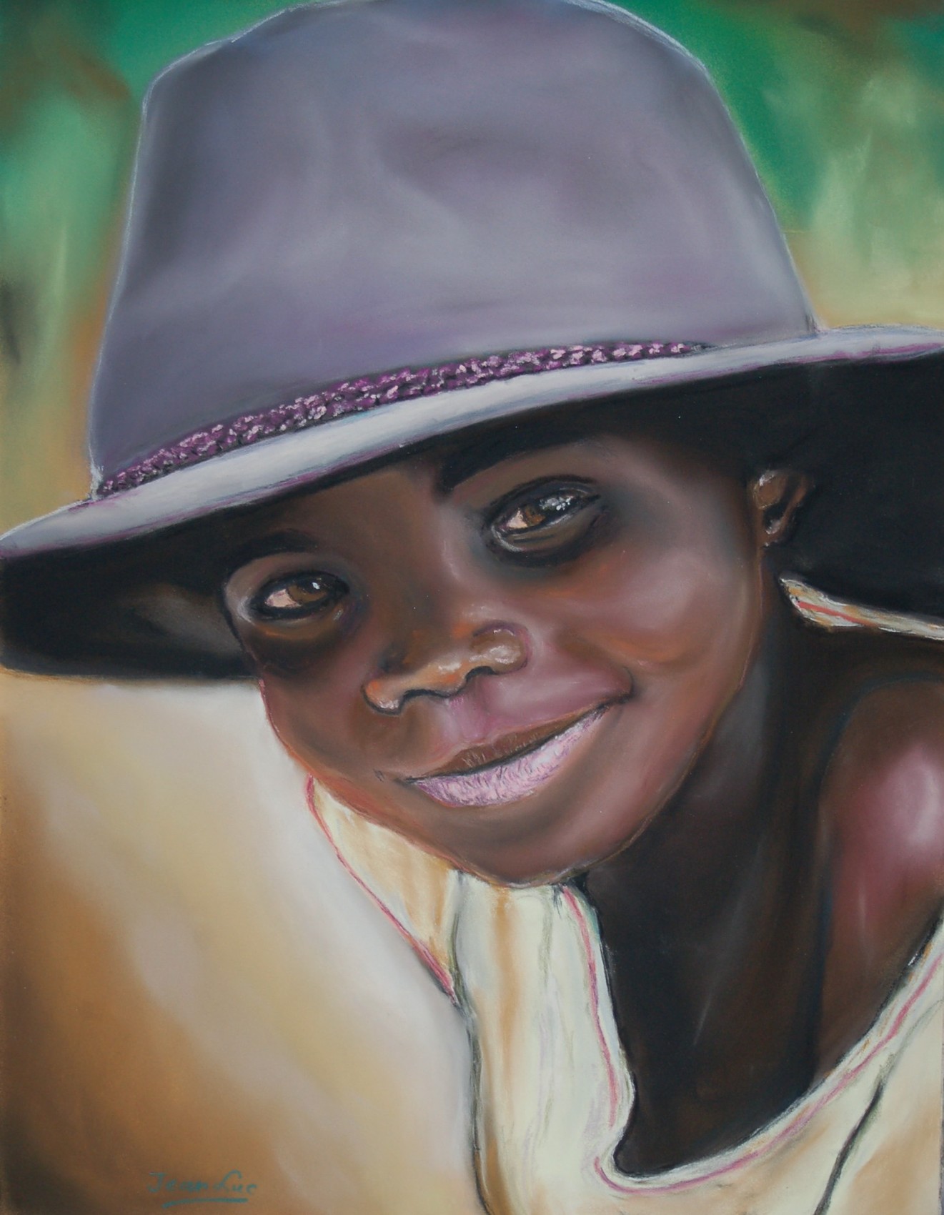 Ca, c'est le pastel préféré de ma femme. Un grand sourire et un regard malicieux ... réalisé dans une période où je m'employais en particulier à rendre l'aspect d'un chapeau de feutre. pastel sec , 30 x 40