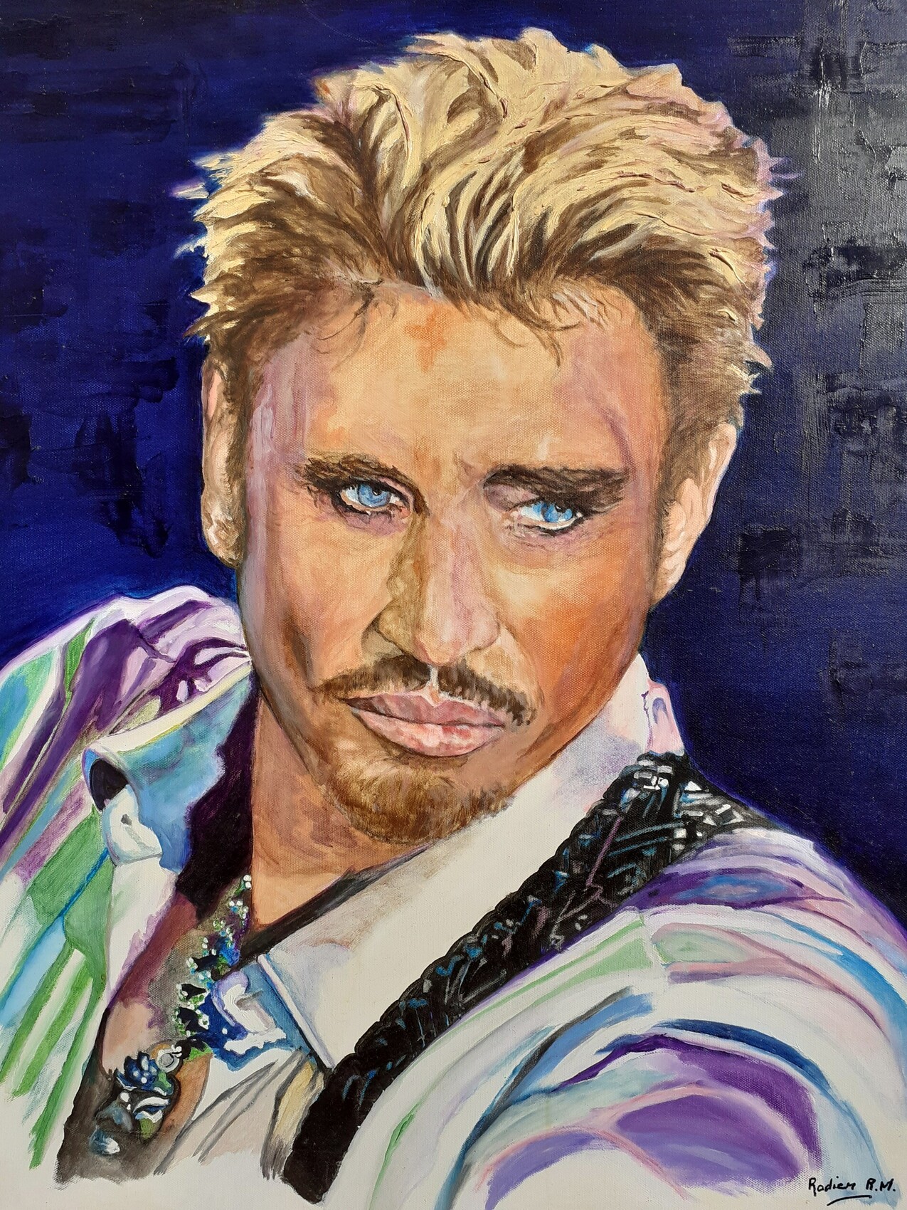 Peinture de johnny faite a la main par moi même . Peinture a l'huile sur toile 60x80x4 cm Photo prise avec flash les couleurs peuvent etre legerement differente du reel.