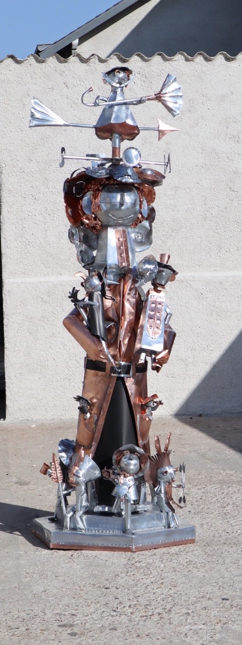 girouette en cuivre et zinc hauteur 2m40 largeur 80cm oeuvre originale unique signée avec certificat d authenticité entierement fait a la main