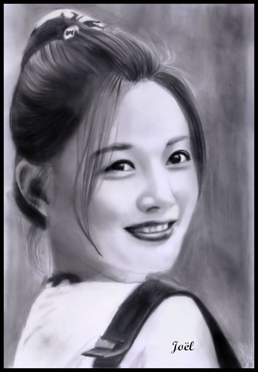Bonjour, portrait de Kim Yoo Jung (Corée du Sud) format A4, crayons 4B, 6B, 7B et 8B