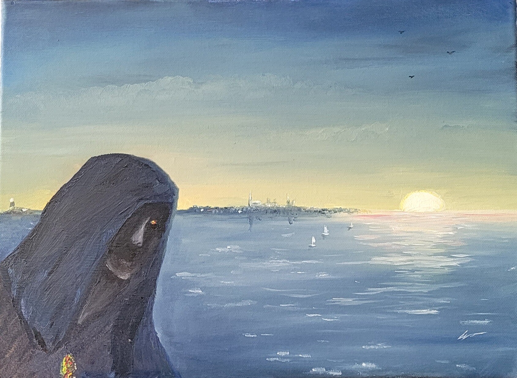"L'Angoisse Vespérale" 13/07/2022 Huile Toile 30x40 cm Quand le soir tombe, l'Angoisse Vespérale pointe son nez tout en me narguant de son œil malsain.