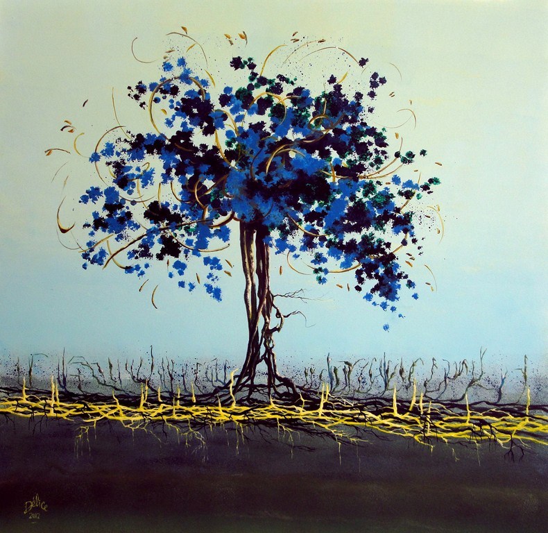 Surprenant,cet arbre qui pousse malgré tout sur une terre rude mais tout en délicatesse.Vos tableaux ouvrent toujours sur un monde imaginaire plein de questionnement.