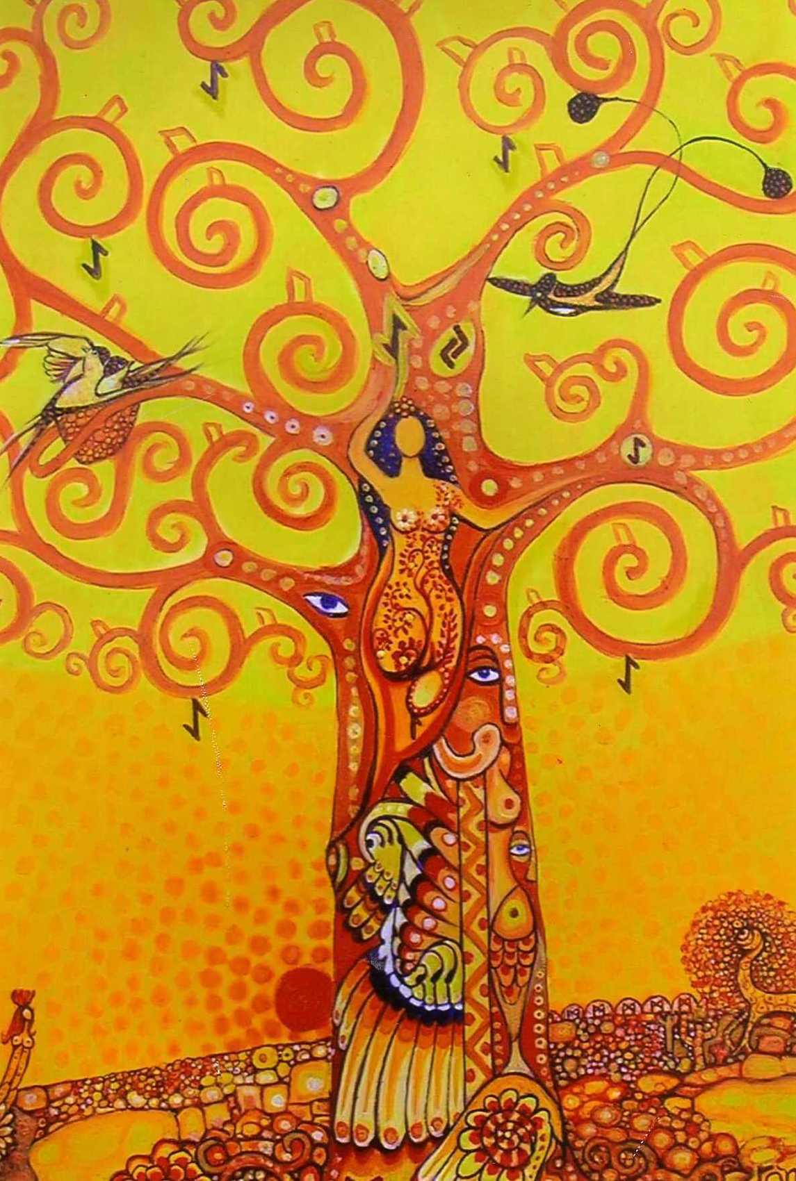 Acrylique de 92x73.Qu'il fait bon se reposer sous cet arbre, en écoutant son chant mélodieux.