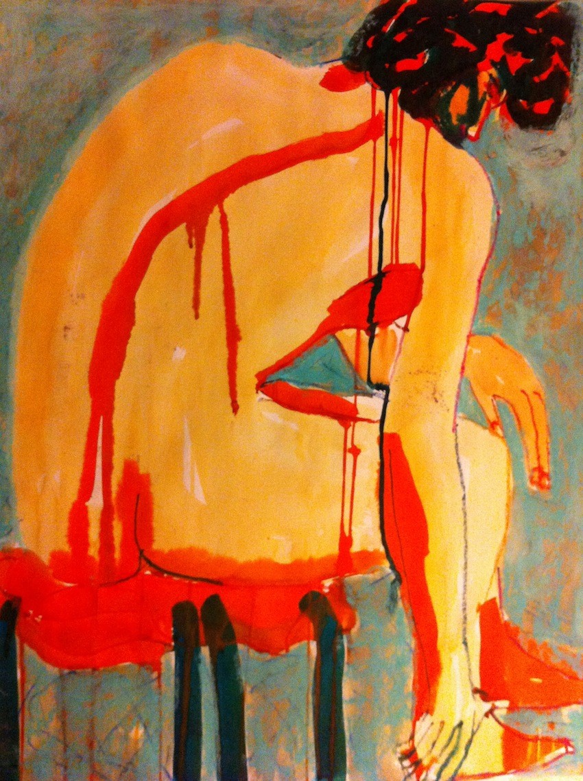 Homme sur une chaise de dos à l'encre et au pastel sec