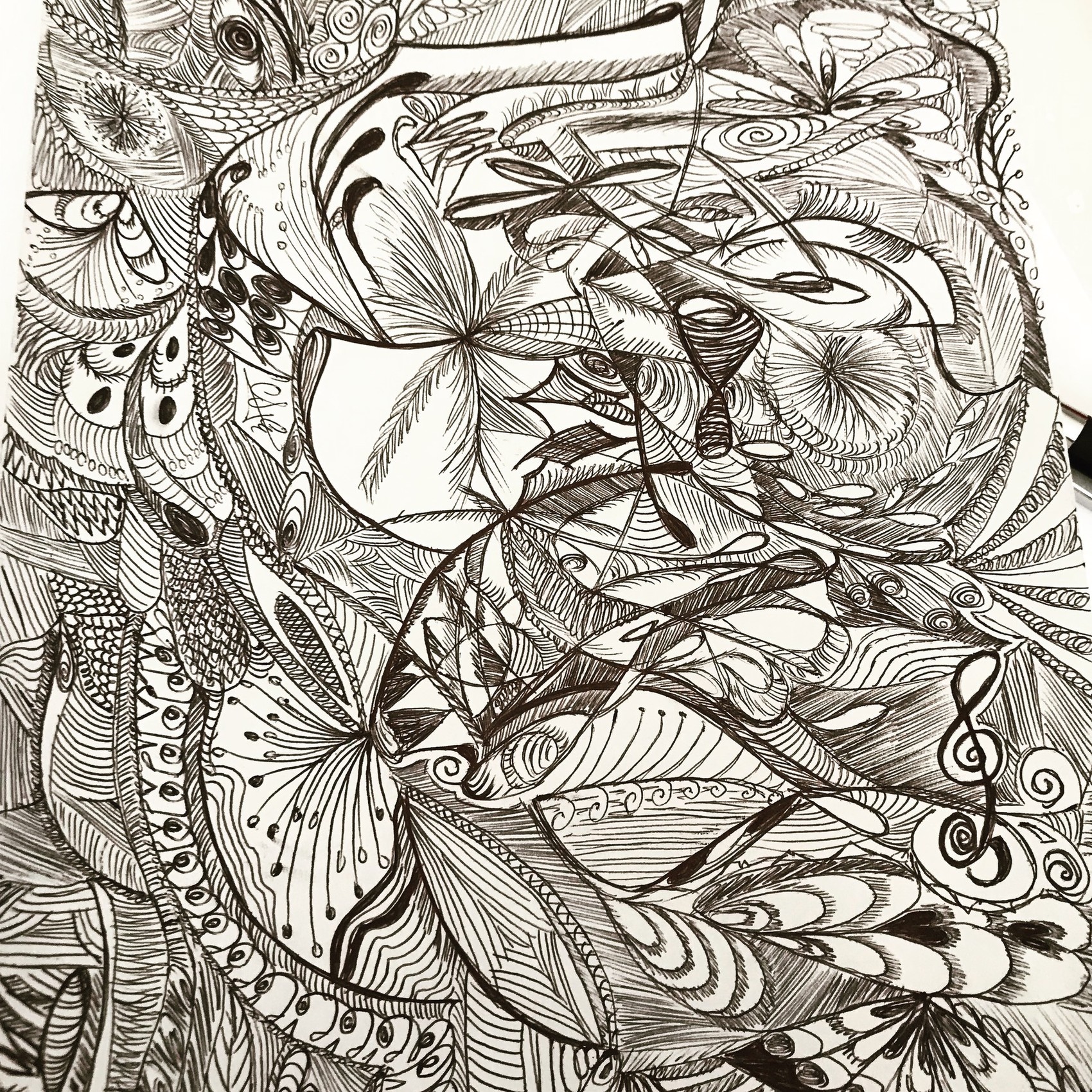 Mon premier dessin abstrait en noir et blanc au bic noir uniquement.