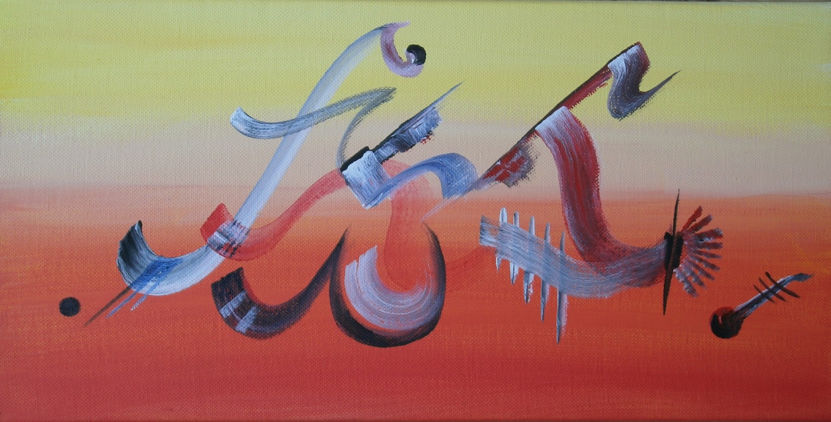 Peinture acrylique sur toile de coton de 20 x 40 cm, accompagnée d'un texte poétique qui exprime mon ressenti face à la toile lors de sa réalisation. Elle fait partie d'une série qui explore le graphisme. " L'envolée lyrique Le pinceau virevolte sur la toile, Rapide, sûr de lui et de la main Qui le guide... Elle est pourtant Balbutiante et incertaine encore... Avec le geste et le coeur qui palpite, Un rhytme est donné, d'abord appuyé, Puis de plus en plus léger, aérien. U