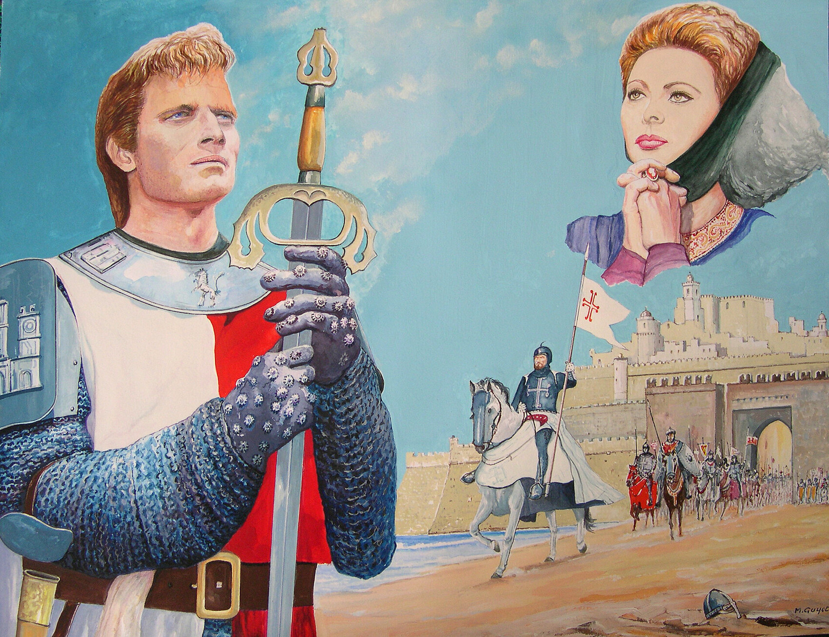 Affiche originale du film "Le Cid" avec double portrait de Charlton Heston et Sophia Loren. Réalisé par Anthony Mann en 1961, ce film est une des plus remarquables fresques historiques du moyen âge portées à l'écran par Hollywood. Heston y est totalement convaincant et la scène haletante du tournoi pour Calahorra reste un modèle du genre. Gouache.