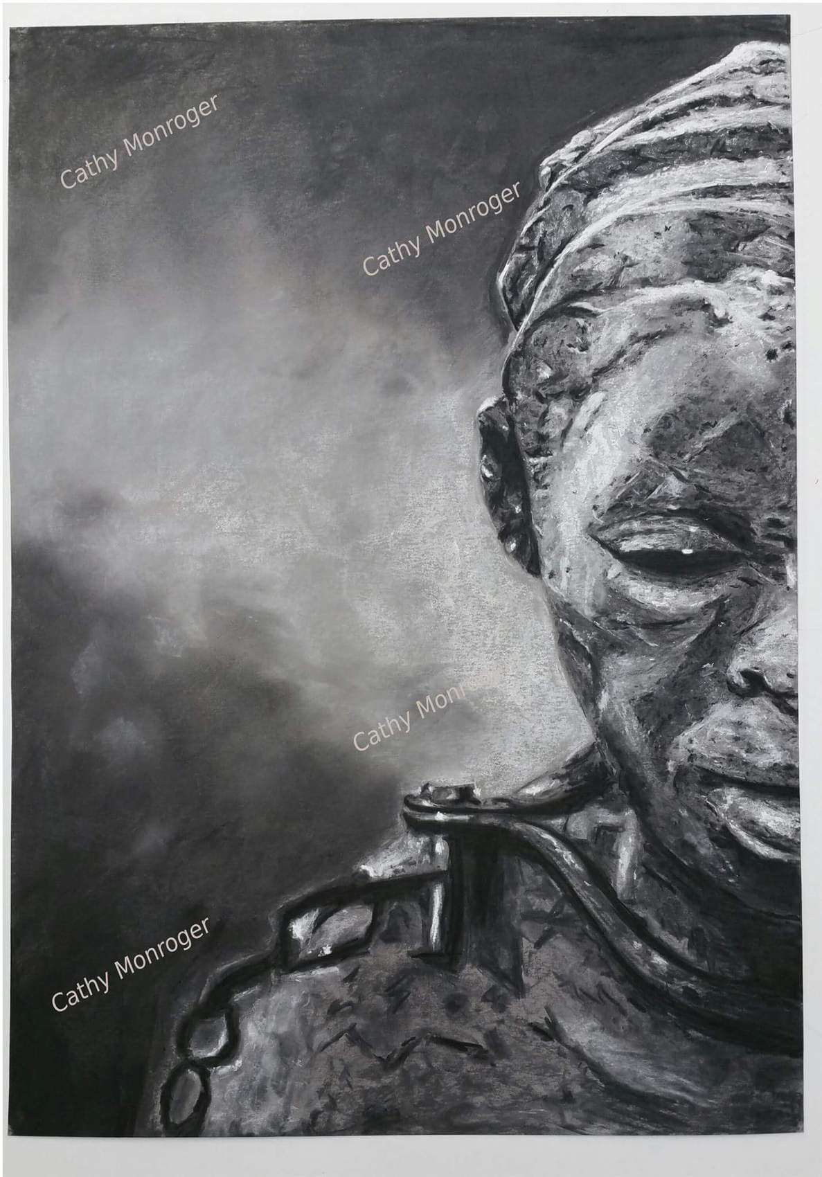Fusain et craie blanche sur feuille grise 50x70
