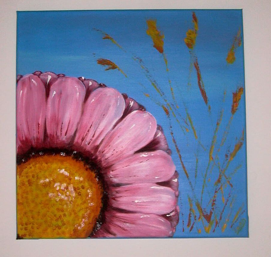 tableau 40 x 40 cm , peinture à l'acrylique, travail au pinceau et au couteau, impression estivale, floraison et herbes folles