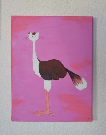 L'un de mes petits exercices de dessins préférés (pour réveiller l'esprit et le crayon), c'est la "fusion" de deux animaux aléatoires. Je m'amuse toujours beaucoup à les rendre le plus cohérents pour possible, et étonnement "L'Hamstruche" est le premier que j'ai transformé en peinture. Acrylique sur toile, 35x27 cm, 2021.