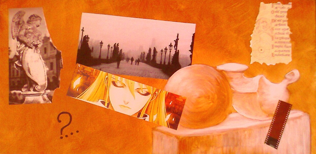 Acrylique sur toile et collage. 39.5 x80 cm.