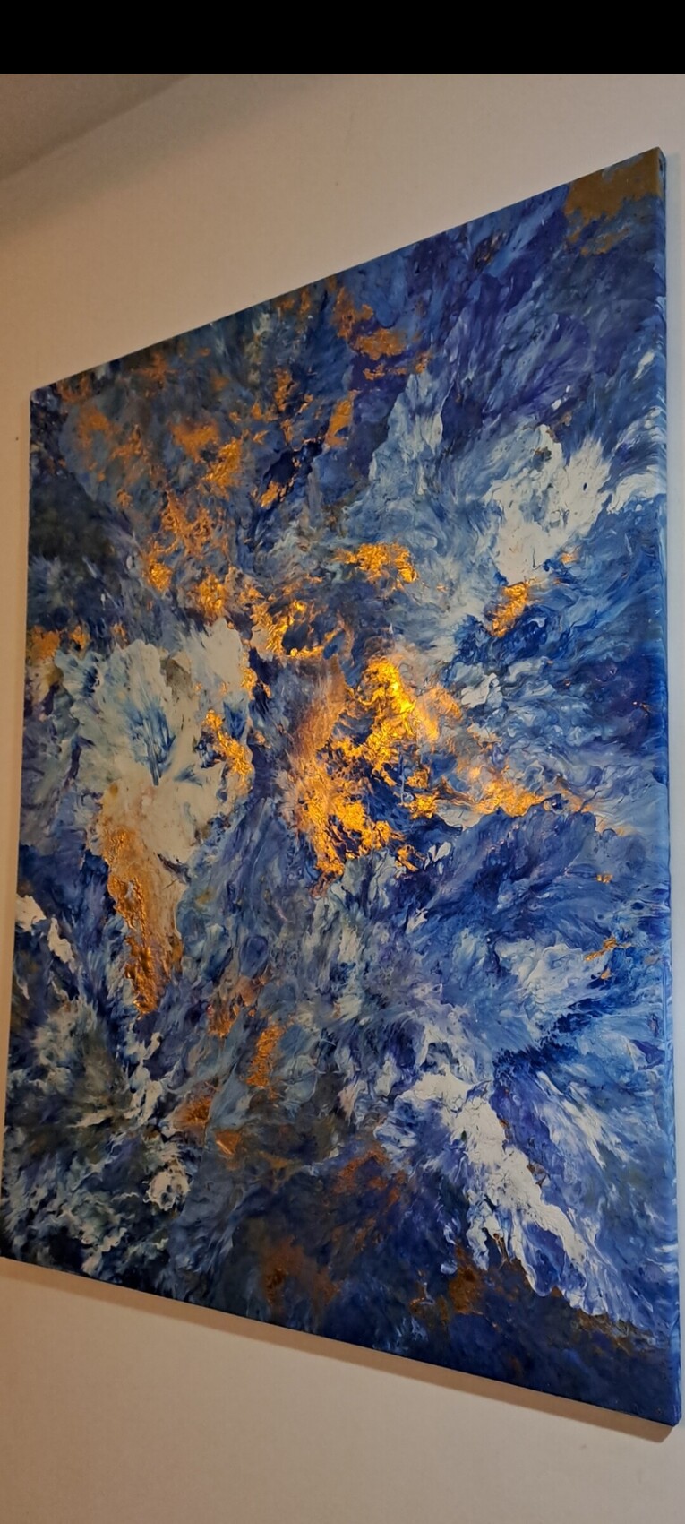 Tableau abstrait bleu marine 100x70 original pour une décoration moderne
