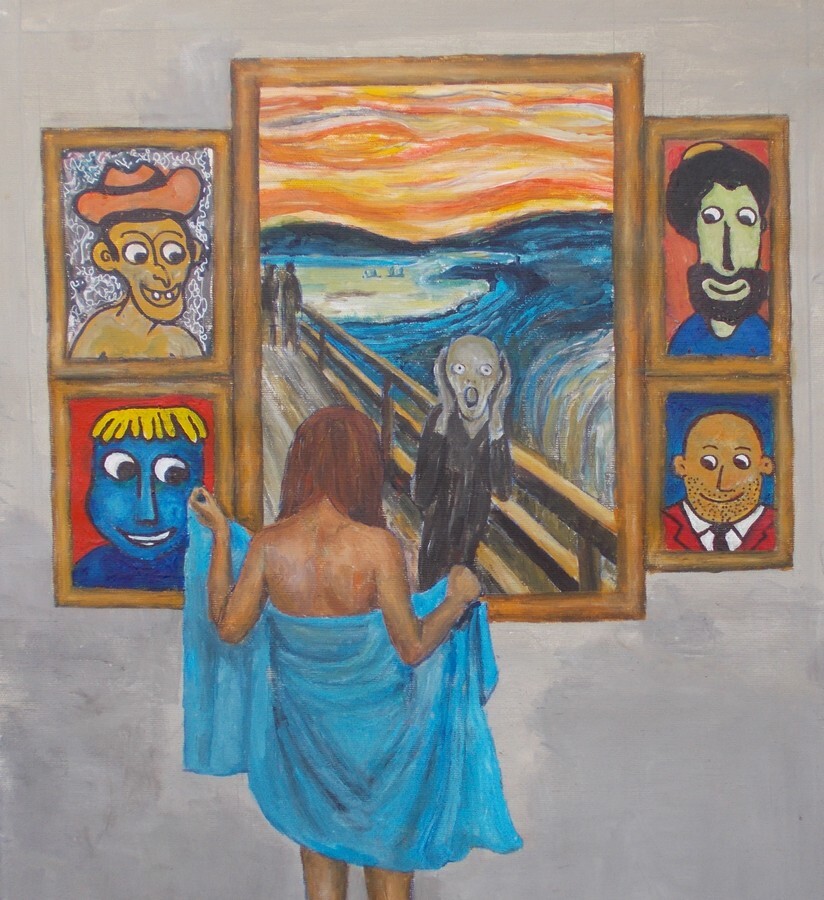 L’interprétation du tableau de Munch est carrément hilarante ! (En outre, il est trés bien reproduit). J’’aime votre humour, toujours soft, votre malice rafraichissante, et, et, votre talent de peintre. Bravo Adad.