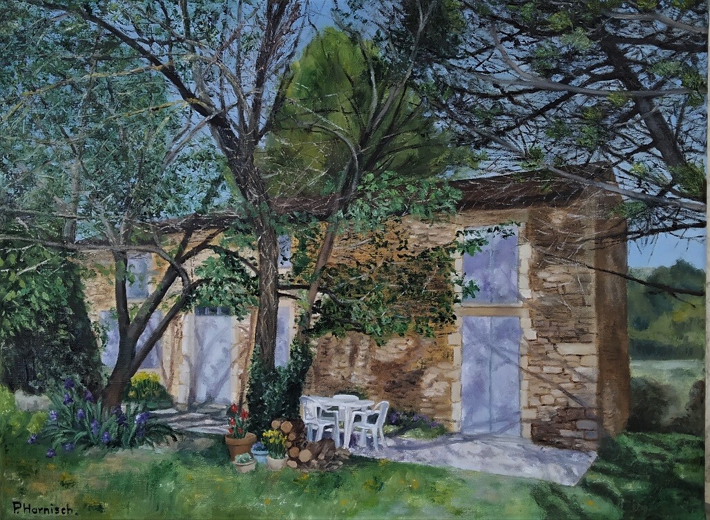 Ancienne bergerie devenue maison de campagne . Huile sur toile de lin, format 61 cm x 46 cm .