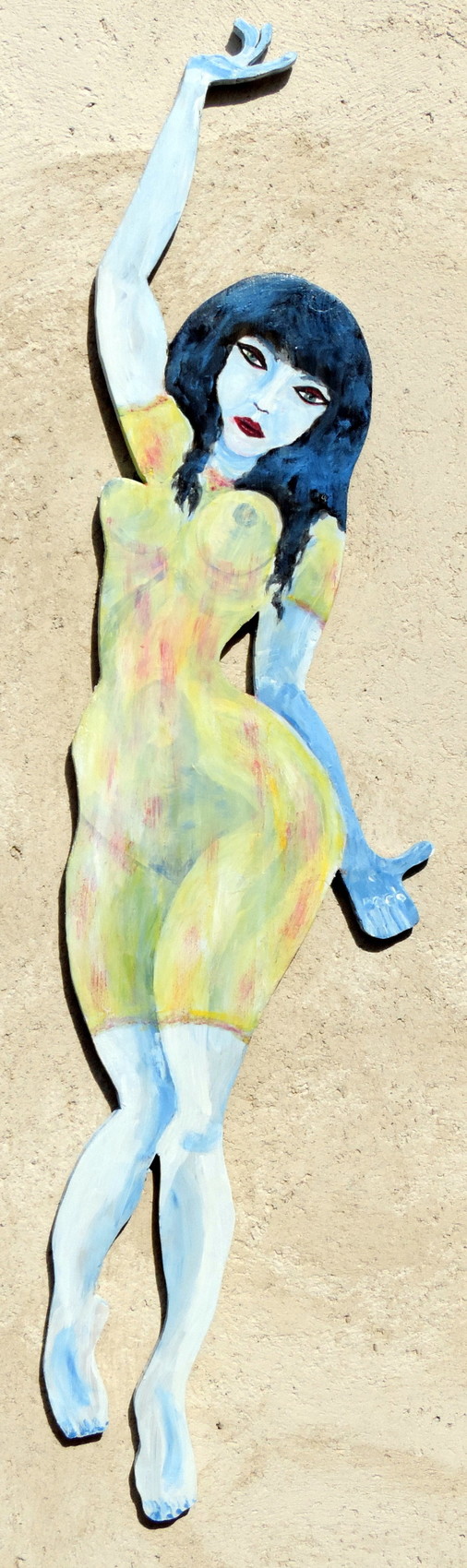 La dame blanche de Palavas JfG Jean-François Gantner peinture sur bois découpé 112 cm X 3,4 cm représentation de personnages imaginaires