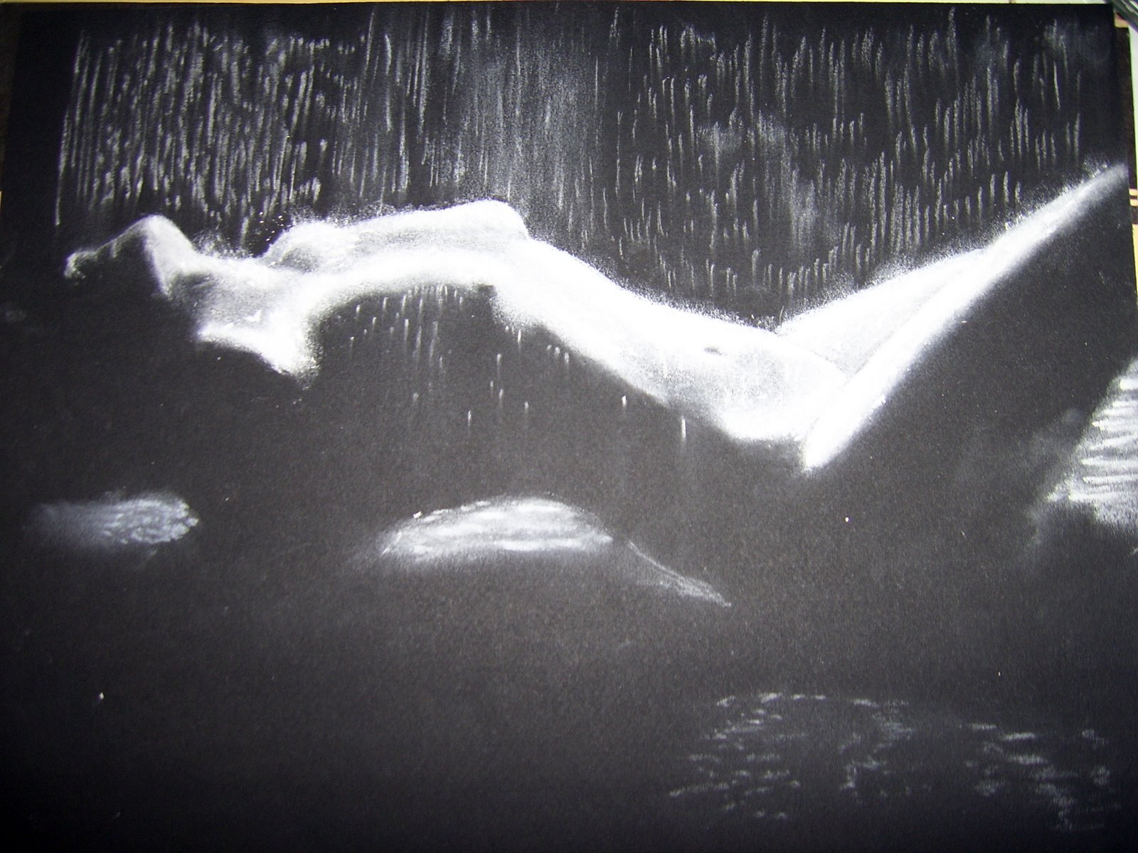 Bravo pour votre oeuvre ! J'aime bcp les pastel blanc sur canson noir. C'est fou ce que l'on peut faire avec une seule couleur en jouant avec la lumière !!