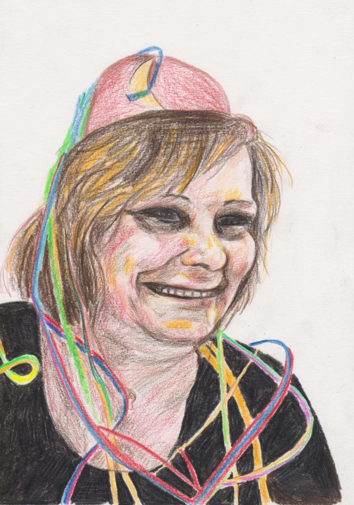 A4, crayons pas encore aquarellés. Une artiste du site, qui rit tout le temps. Un indice : Bambi ne l'aime pas trop et elle a un manteau en peaux d'écureuils (et elle est nulle en kangourous)
