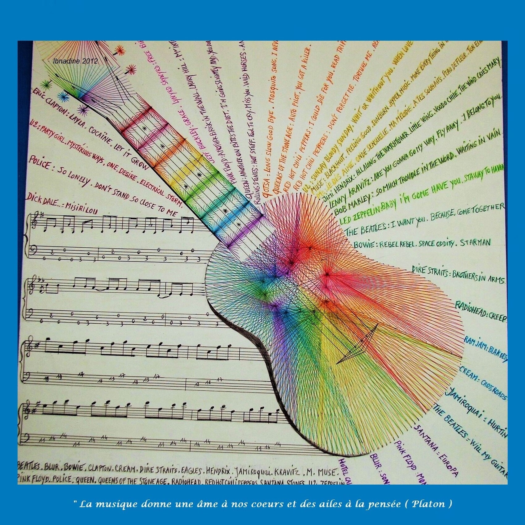 Salus, oui, comme l'a dit Corinne, un travail, qui demande, de la patience, et concentration, ainsi, la technique, style, symétrie, sont réussis, les couleurs ont donné, leur harmonie, à l'instrument, bravo beau travail artistique, en hommage de la fête de la musique, dans toutes ses couleurs et mélodies.