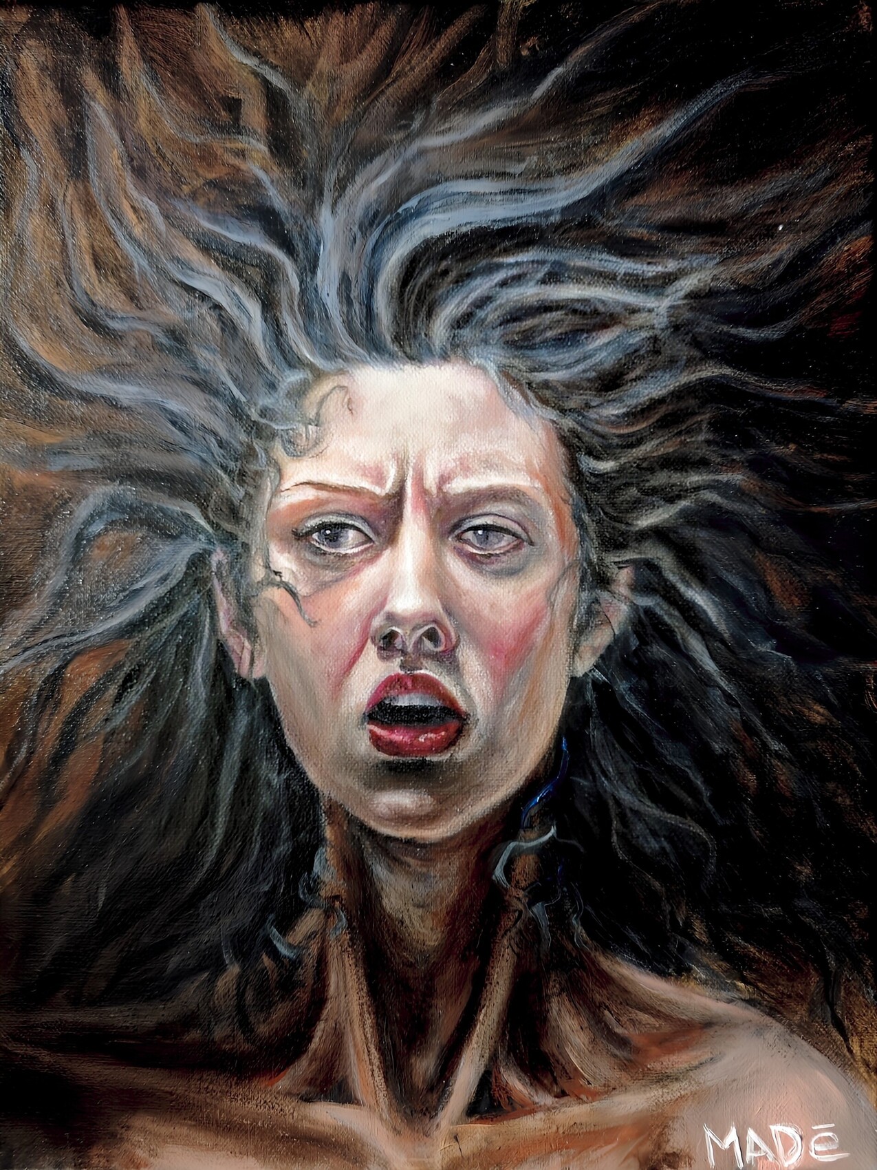 Je suis subjugué par votre folle. Dans ce regard ,vitreux , on y perçoit les douleurs enfouies qui entraînent la folie.