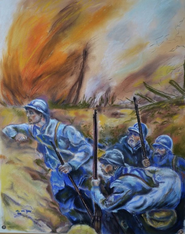 Pastel Format : 70 cm X 80 cm Réalisé en 2013 pour une exposition commémorative de la guerre de 14-18. Oeuvre d'après Alphonse Lalauze (Infanterie Métropolitaine) Monique DE GELAS