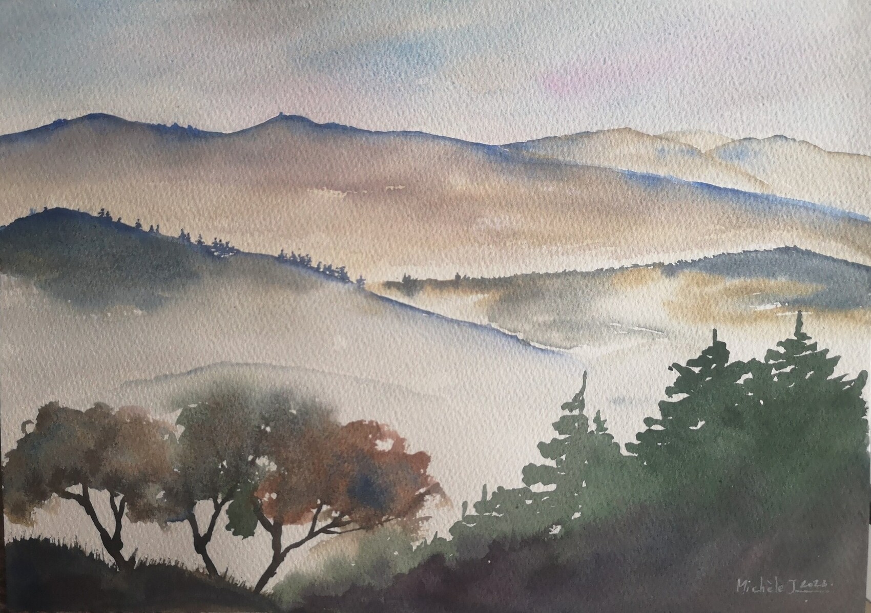 Bonjour Michèle. Votre œuvre au titre évocateur " La Ligne Bleue des Vosges". Obtient toute mon admiration. Vous mettez en avant la majesté des vallons, nom qui me touche puisque l’étymologie de mon patronyme signifie Vallon, patronyme typiquement Vosgien et remontant au 16e siècle. La palette des teintes renforce la quiétude du site. Bravo et merci de votre hommage à notre magnifique région. Agréable journée. Mes amitiés.