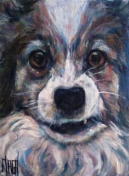 Il se veut menaçant mais on comprend bien qu'il n'y a aucun risque avec cette "peluche". Il en faut une dose d'amour et de sensibilité pour peindre aussi bien le portrait de ce petit chien magnifique. Un bel hommage.
