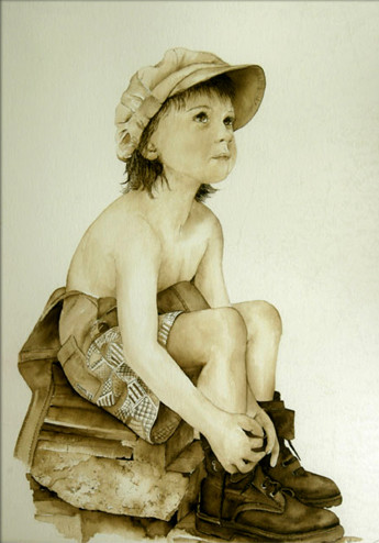 Peinture Fillette à la fontaine et la petite gavroche , des aquarelles de haut niveau