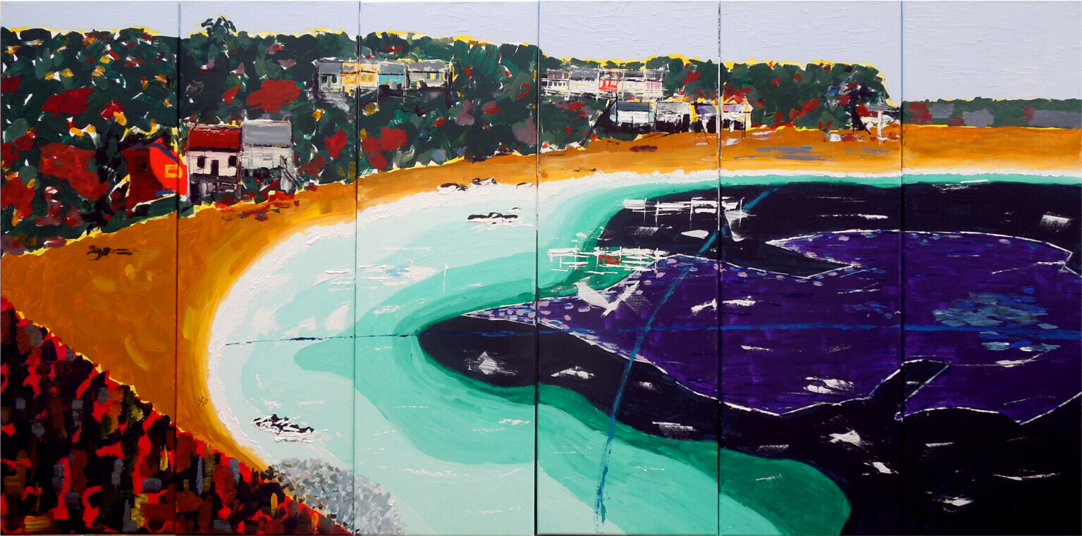 Cette grande toile d’un paysage côtier montre une audace chromatique saisissante. Les contrastes apportent une tension visuelle attachante. Une interprétation vibrante où la nature semble dialoguer avec l’abstraction. Bravo Yves !