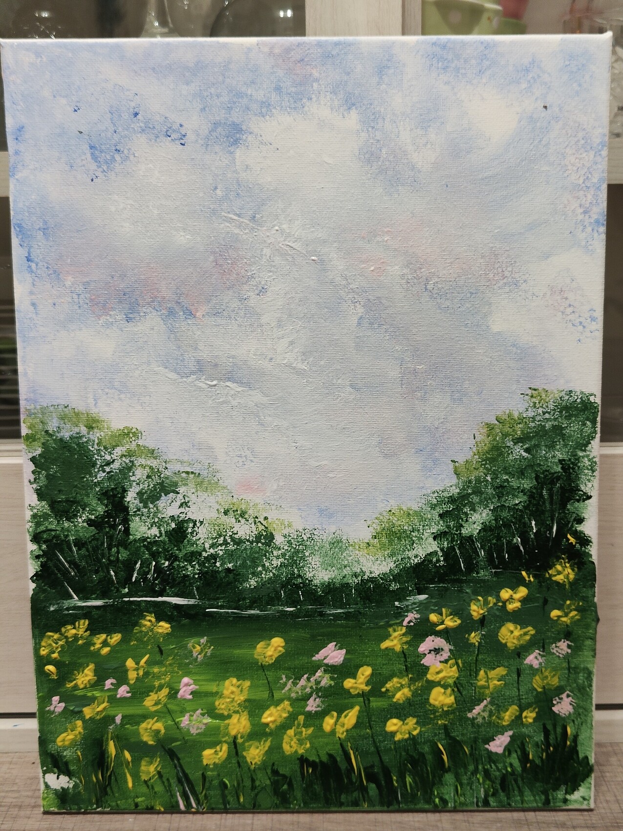 La toile est joyeuse, bravo pour votre apprentissage ! j'essaie juste de commencer à me servir de l'acrylique, c'est pas super évident !
