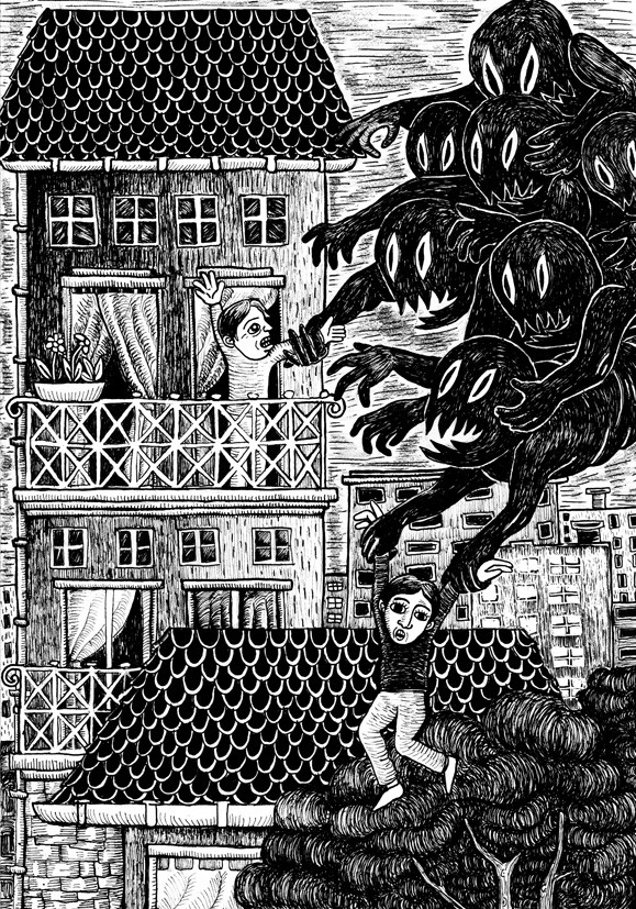 Nuage monstres fantômes encre de chine format A4