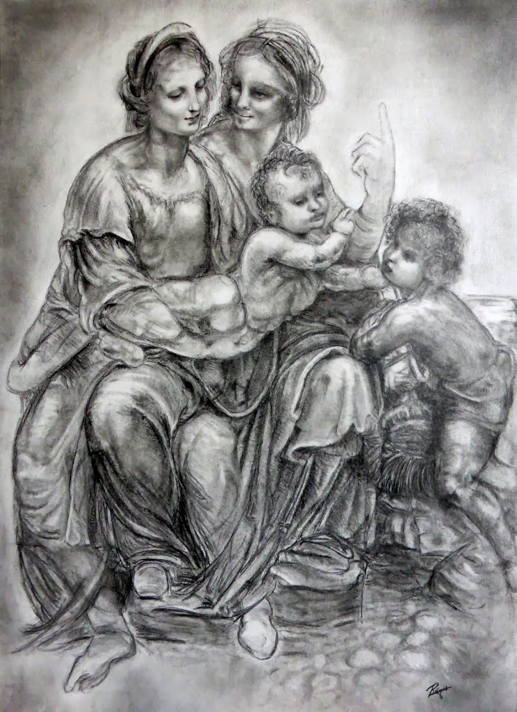 Reproduction d'un dessin de Léonard de Vinci au crayon graphite sur papier Canson format A3