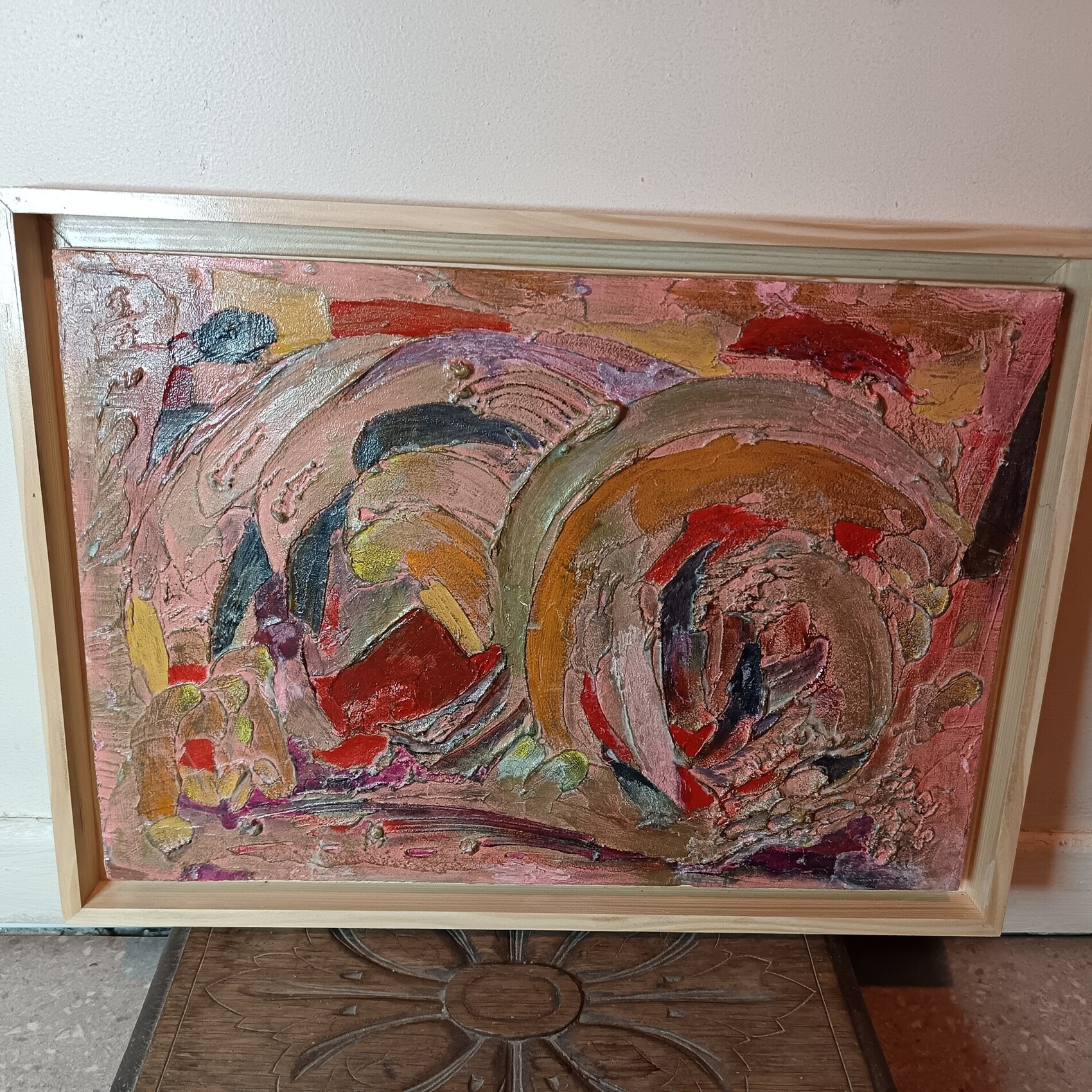 Peinture abstraite acrylique sur bois en travaillant la matière. Technique personnelle.