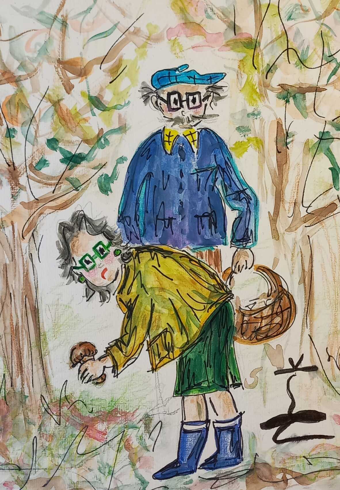 Simone : Où t'es passé Marcel ? J'ai trouvé un cèpe ! / Marcel : Si tu retrouves les œufs de Pâques, on f'ra une omelette !