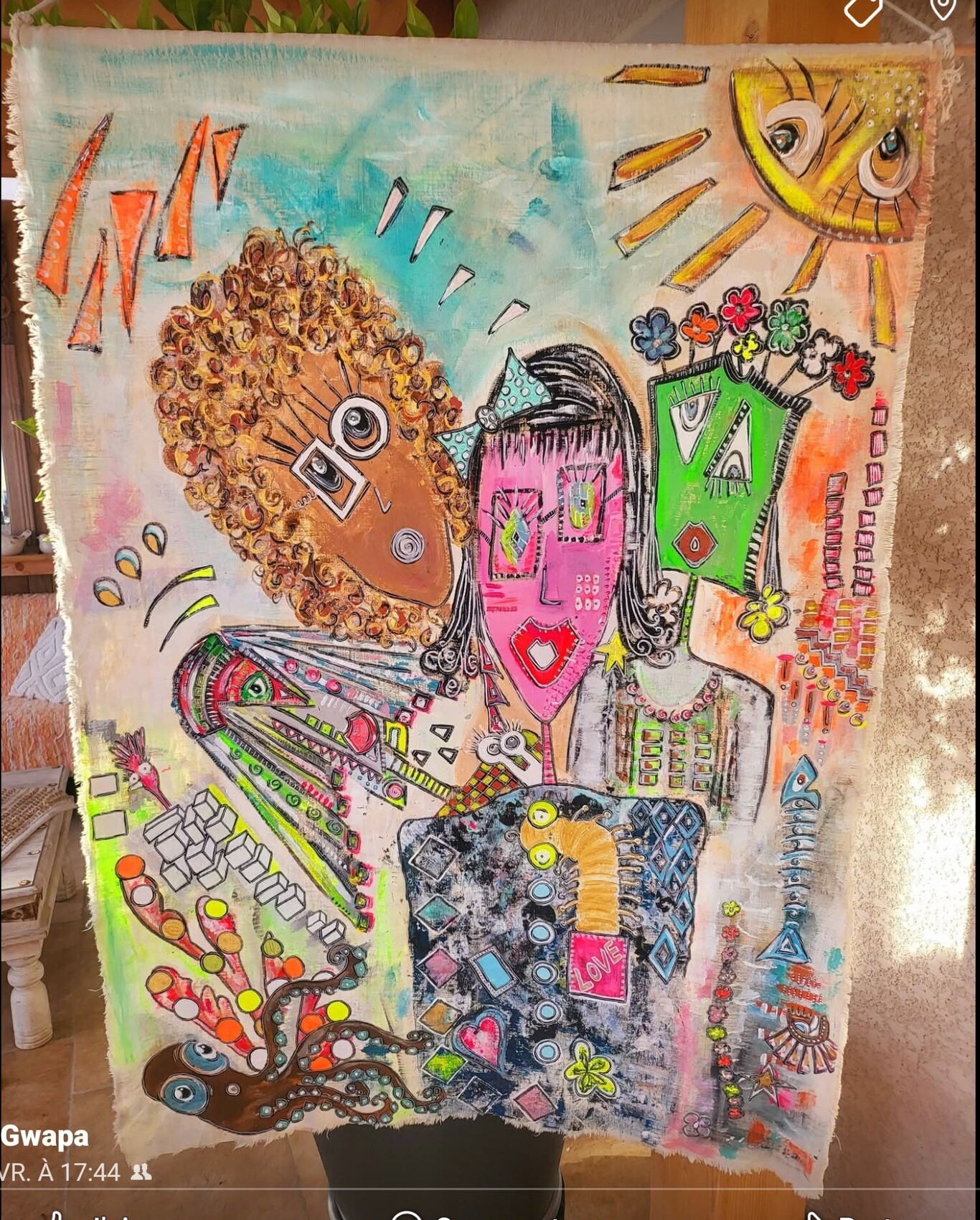 Oeuvre sur textile 90x125 Acrylique Tenture
