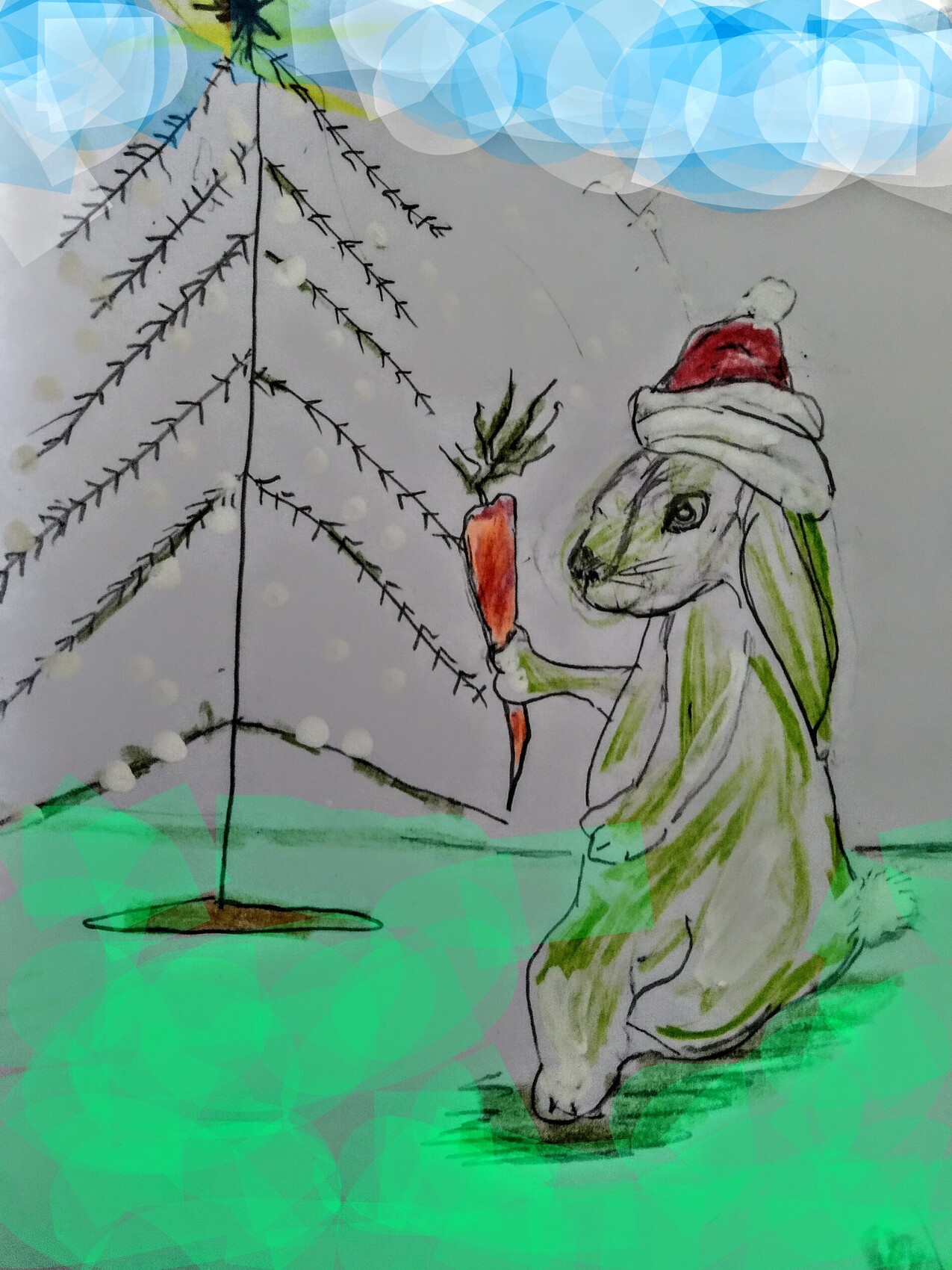 le lapin vert existait donc ? je suis surpris. Le sapin est rigolo avec ses épines Feras tu du lapin aux marron a Noel?,Je cherche la photo d' amelie nothomb pour faire un portrait elle ressemble a la famille adams elle est marrante. Bonne soirée.