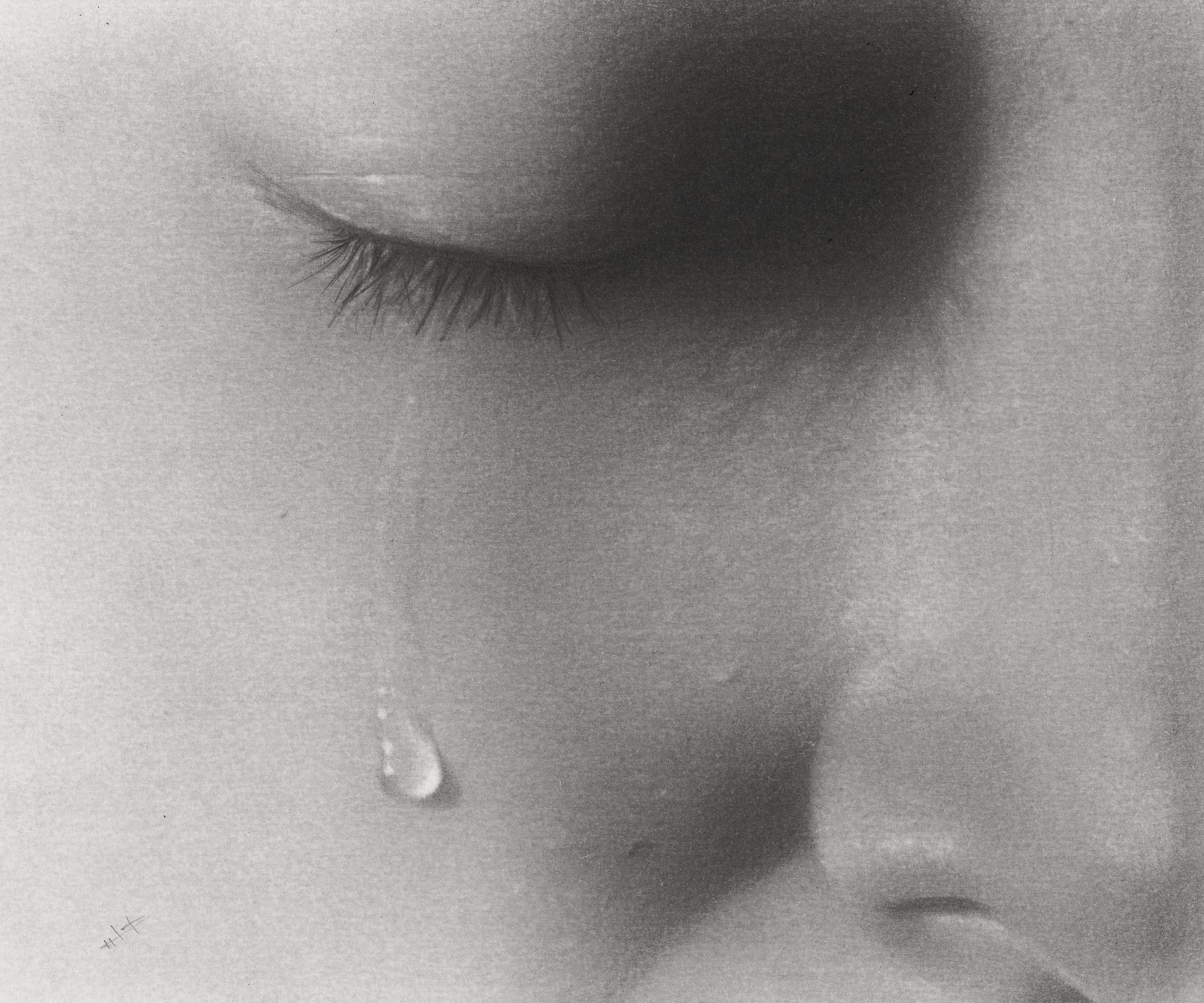 Mieux qu'une photo en noir et blanc!, tout est délicat , les ombres sont parfaites, la larme tout en transparence, parfait, parfait !