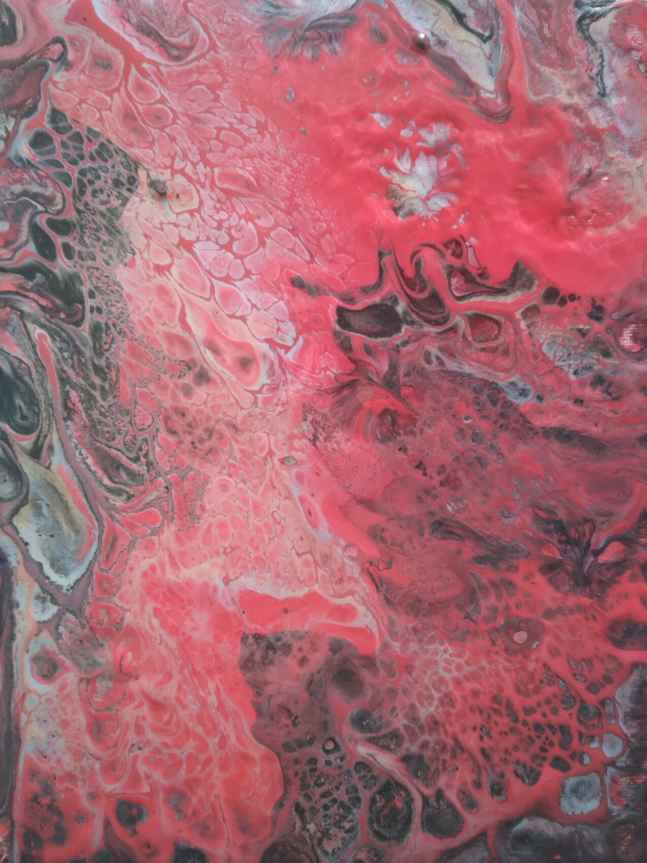 Flip cup rouge argenté cuivre et noir sur toile 18x25