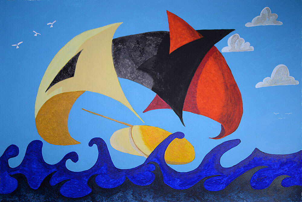 Le bateau jaune, acrylique sur papier