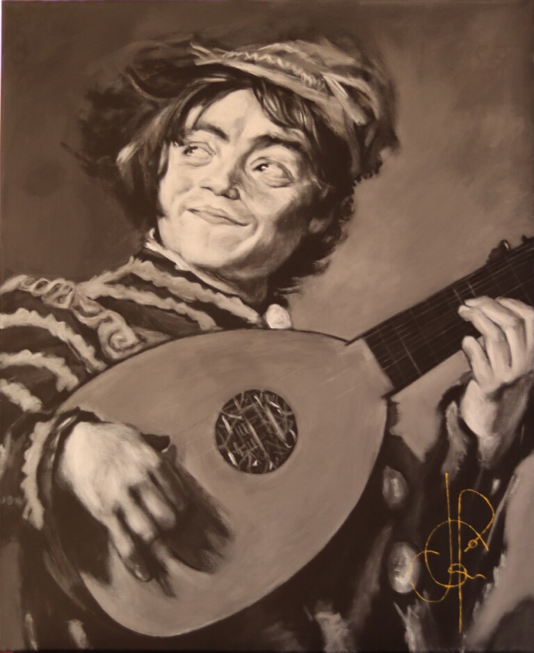 Une belle copie ensoleillée du Maître Frans Hals " Le bouffon au luth " son visage est magnifiquement coloré de lumière … sa musique doit être joyeuse tel ton pinceau est précis … encore un GRAND BRAVO JOEL