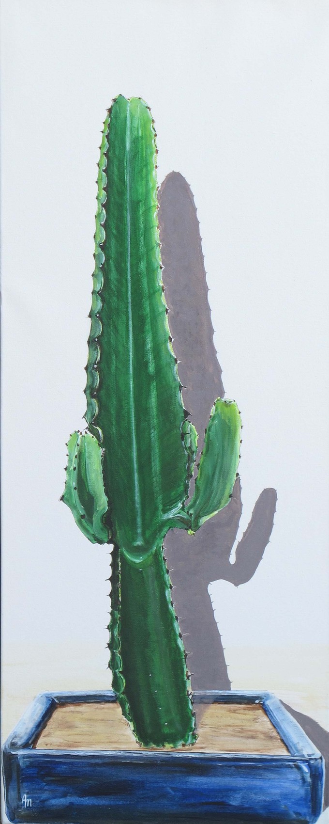 Dans un pot Bonsaï bleu un Euphorbia acrurensis. Peinture acrylique 40x100cm